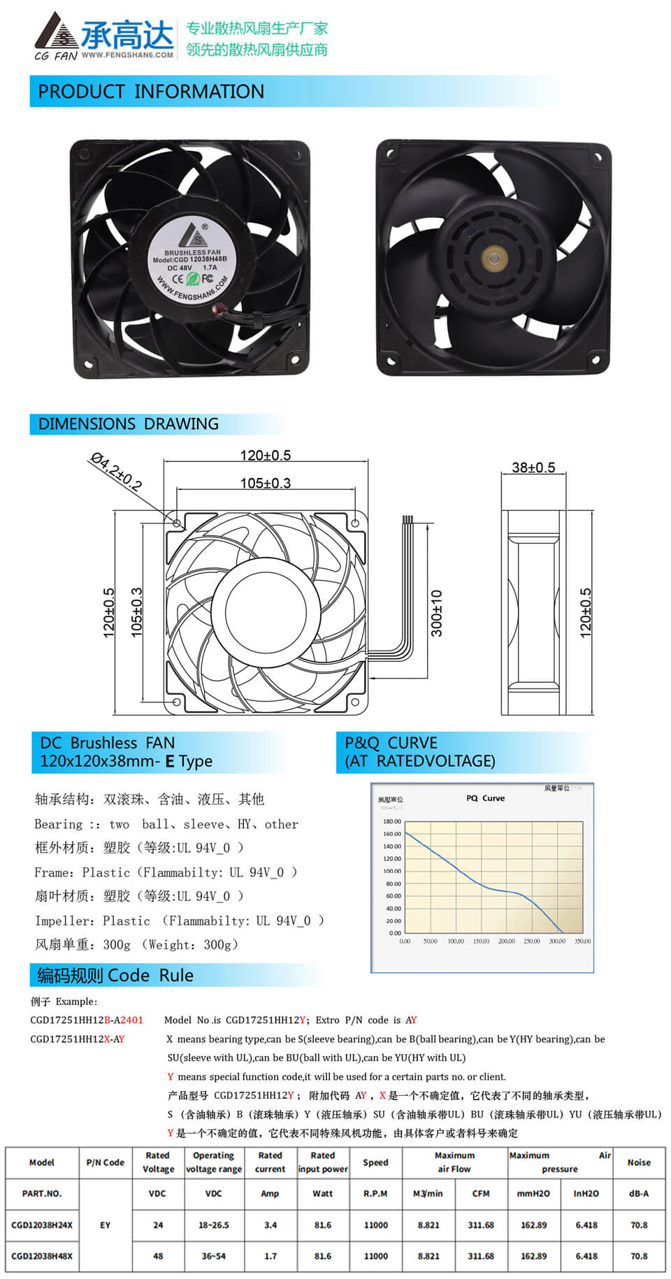 120x120x38mm-DC直流風(fēng)扇-深圳市承高達(dá)電子科技有限公司